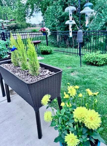 She has created many garden spaces, including one that surrounds a large tree, another near the driveway and two borders of daylilies that run from the curb to the house on each side of the property. Not only does she know her way around plants, but she’s handy in other ways, too. She built the window box by her front window that is filled with her favorite flower — geraniums.