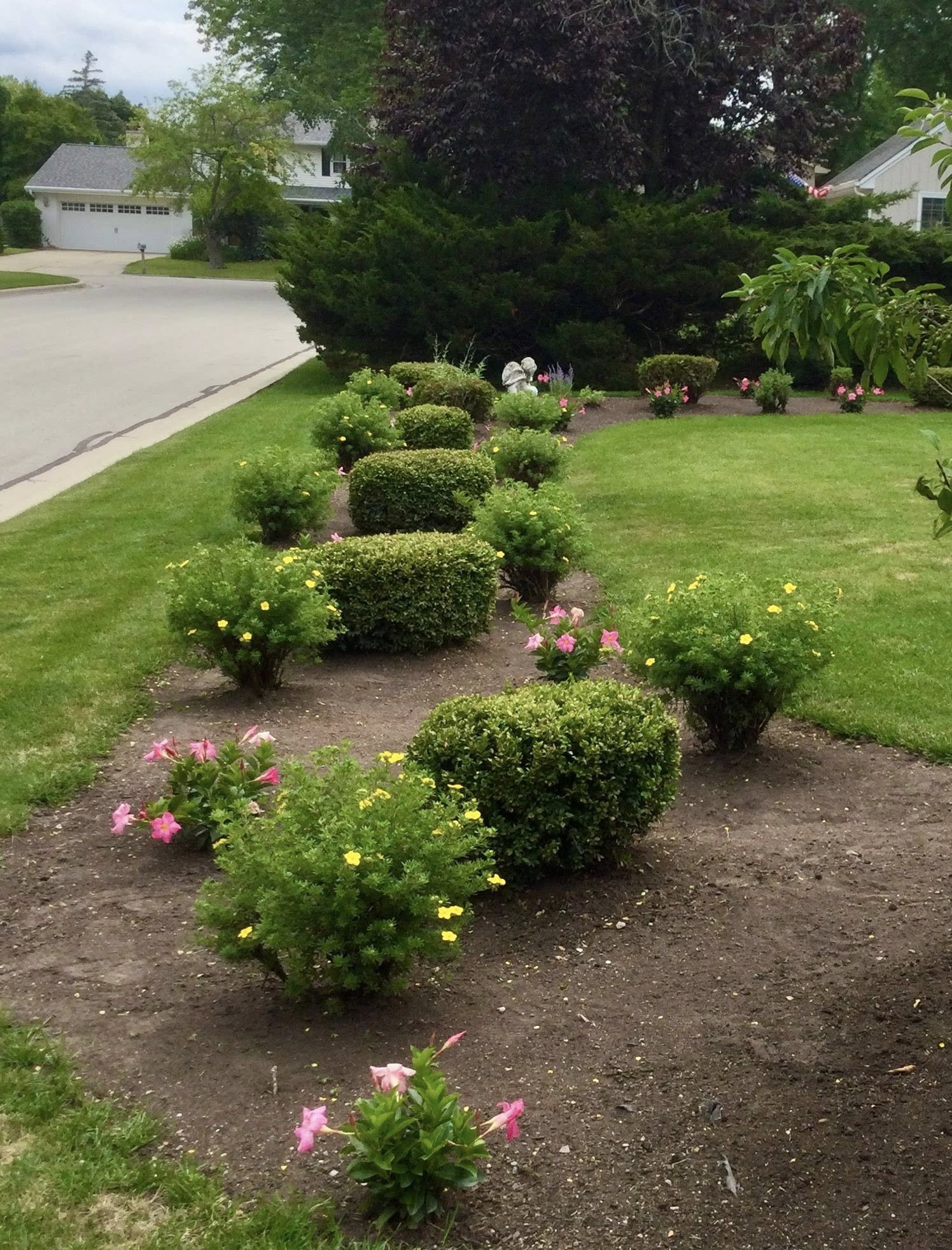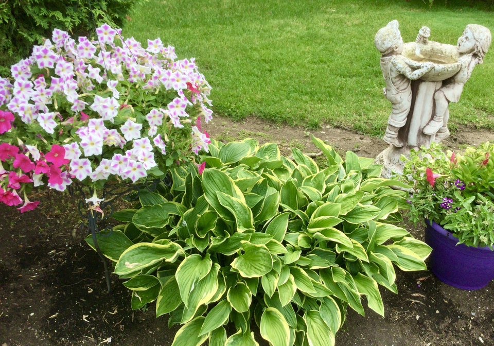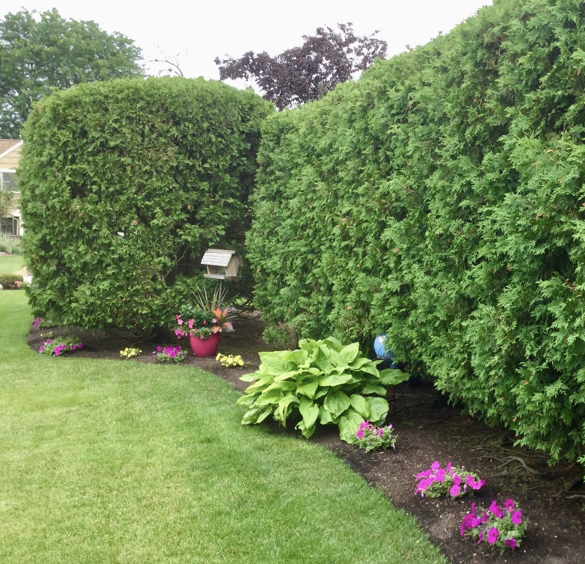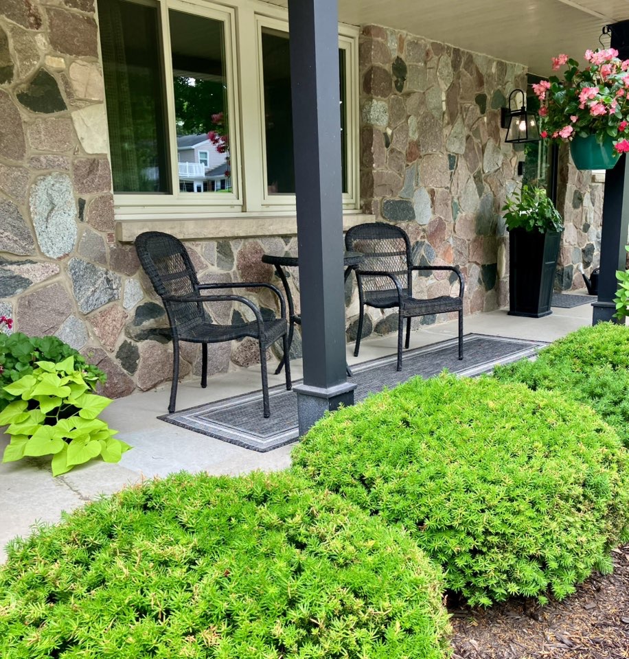They consider Allouez a special place and want the home they’ve lived at for 30 years to reflect that. They work as a team, with Shari doing all the pretty-in-pink petunias, mandevillas and other annuals and Doug manicuring the more than 30 boxwoods that give the gardens such grand structure. Shari’s dad owned a landscaping business in Manitowoc, so she’s lovingly carrying on his passion.
