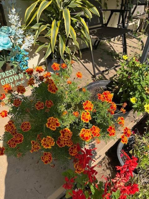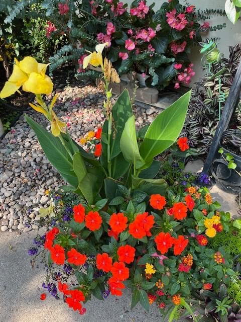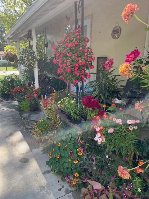 In the three years they’ve lived at 403 Kalb St., they have turned up the curb appeal with oodles of happy, thriving annuals, including zinnias, cannas, begonias, impatiens and nasturtiums. All that fabulous color gets an added tropical punch from some of their indoor plants that get to come outside and soak up all summer has to offer on the front porch.