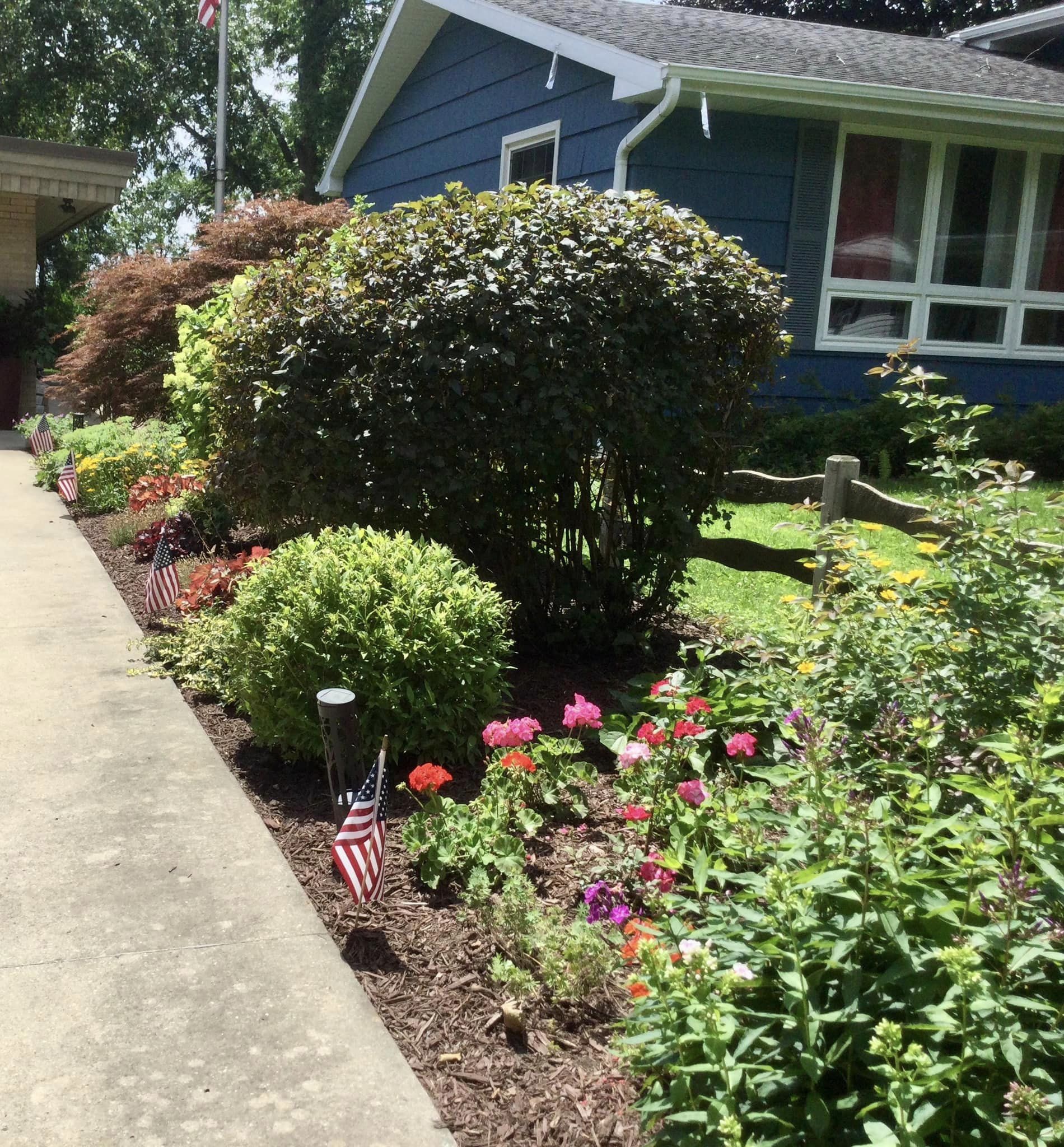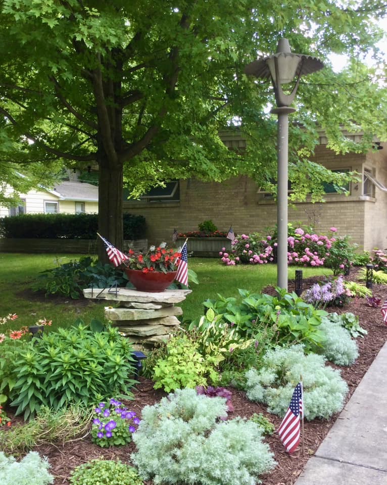 For our second Garden of the Month for July, we have a red, white and blue treat for you. It’s the patriotic-themed front yard of Brenda and Dan Whipp on Woodview Lane.
